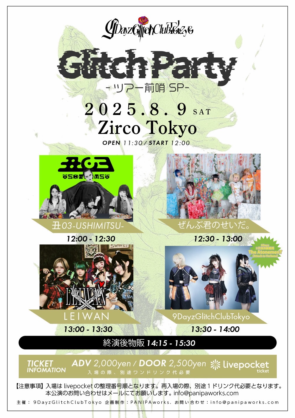 25/08/09(土)9DayzGlitchClubTokyo pre. Glitch Party -ツアー前哨 SP-