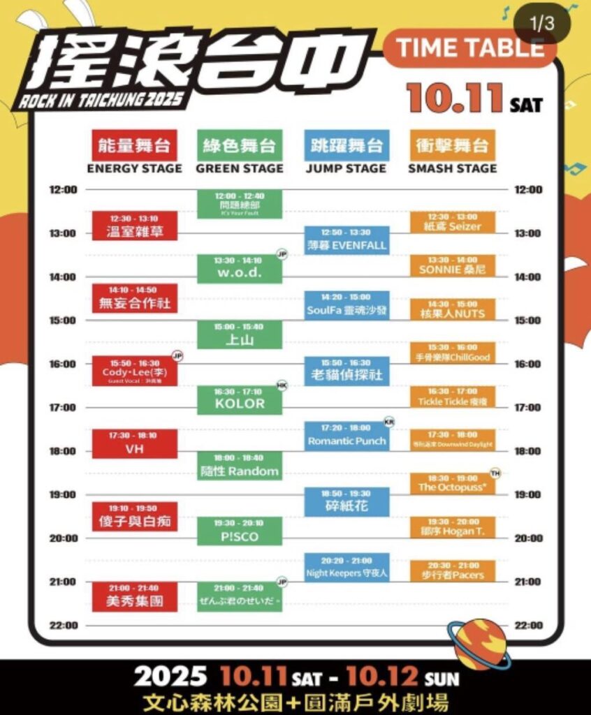25/10/11(土)ROCK IN TAICHUNG 2025(台湾)