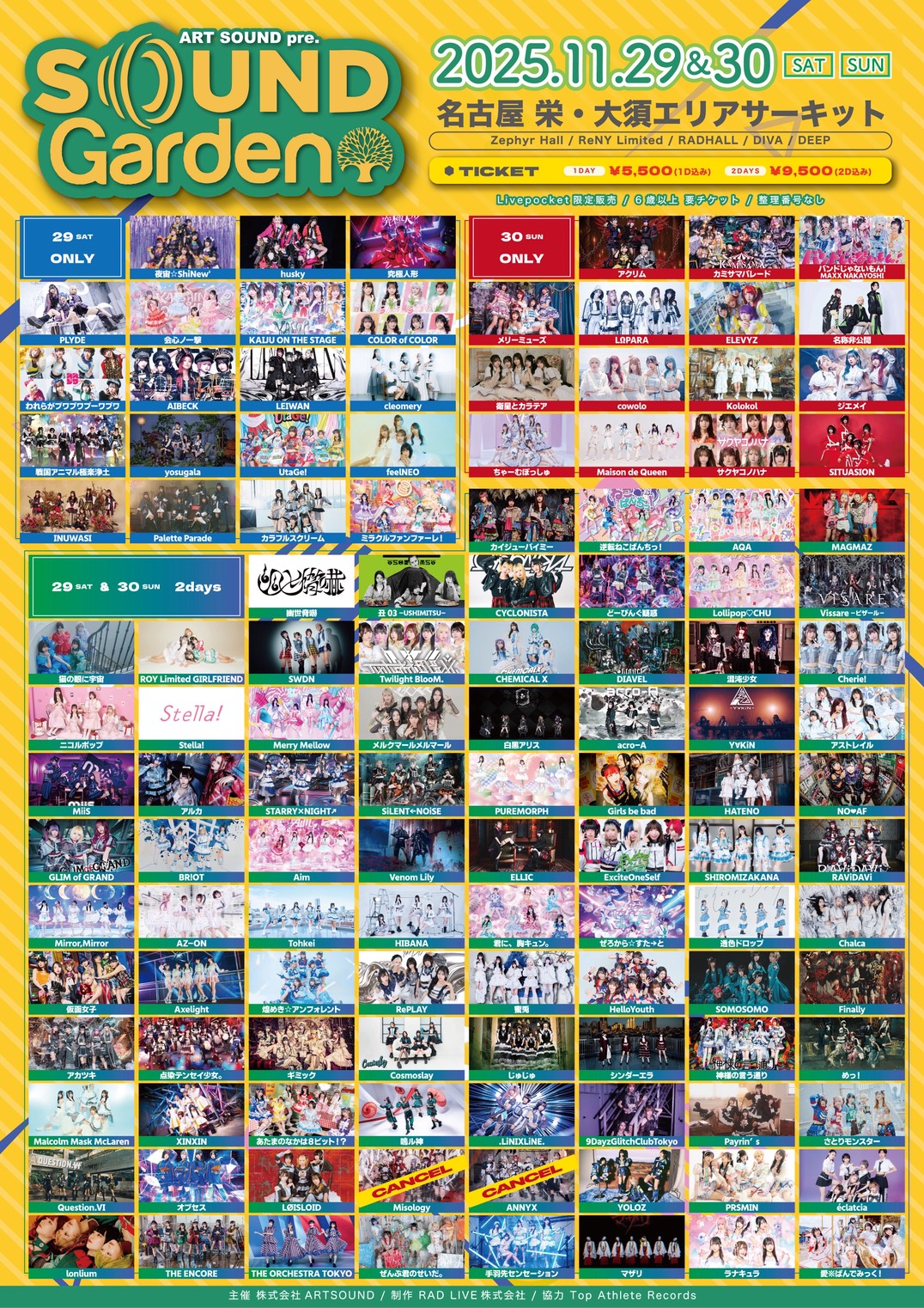 ▼ 出演:出演:(両日)THE ORCHESTRA TOKYO / ラナキュラ / RAVi DAVi / Tohkei / THE ENCORE / 煌めき☆アンフォレント / 手羽先センセーション / lonlium / 君に、胸キュン。 / 透色ドロップ / Axelight / HIBANA / HelloYouth / Chalca / Payrin’s / SOMOSOMO / マザリ / 仮面女子 / 点染テンセイ少女。/ Question.VI / ニコルポップ / Malcolm Mask McLaren / ぜんぶ君のせいだ。/ アカツキ / Finally / Mirror,Mirror / YOLOZ / PRSMIN / 蜜兎 / 逆転ねこぱんちっ! / AQA / MAGMAZ / カイジューバイミー / Cosmoslay / AZ-ON / 鳴ル神 / 9DayzGlitchClubTokyo / Misology (上海) / 幽世脅嚇 / 丑03 / ぜろから☆すた→と/ XINXIN / CYCLONISTA / どーぴんぐ疑惑 / Lollipop♡CHU / LØISLOID / Vissare-ピザール- / めっ!/ 神様の言う通り / シンダーエラ / じゅじゅ / オブセス / さとりモンスター / 猫の眼に宇宙 / ROY Limited GIRLFRIEND / NiTRO / SWDN / Twilight BlooM. / .LiNIXLiNE. / CHEMICAL X / ANNYX(上海) / DIAVEL / 混沌少女 / あたまのなかは8ビット!? / Cherie! / Stella! / Merry Mellow / メルクマールメルマール / ギミック / 白黒アリス / acro-A / Y∀KiN / アストレイル / MiiS / アルカ / éclatcia / RePLAY / STARRY×NIGHT↗︎ / SiLENT←NOiSE / PUREMORPH / Girls be bad / 戦国アニマル極楽浄土 / ニーキューオメガ(仮) / NO♡AF / GLIM of GRAND / BR!OT / Aim / Venom Lily / ELLIC / ExciteOneSelf / SHIROMIZAKANA